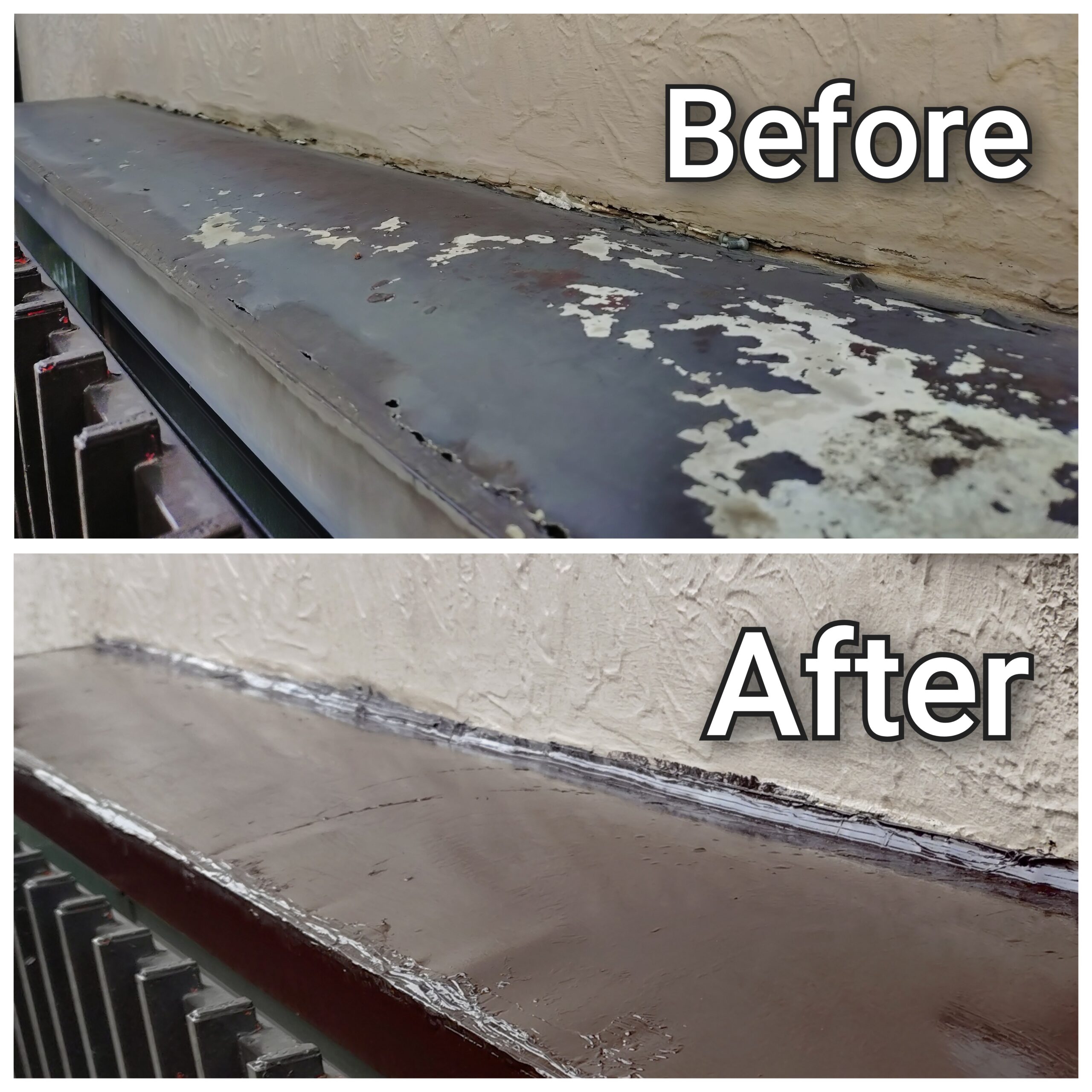 出窓の塗装しました。 ケレンした後、穴も塞ぎ、防錆剤塗り、仕上げ塗装しました。